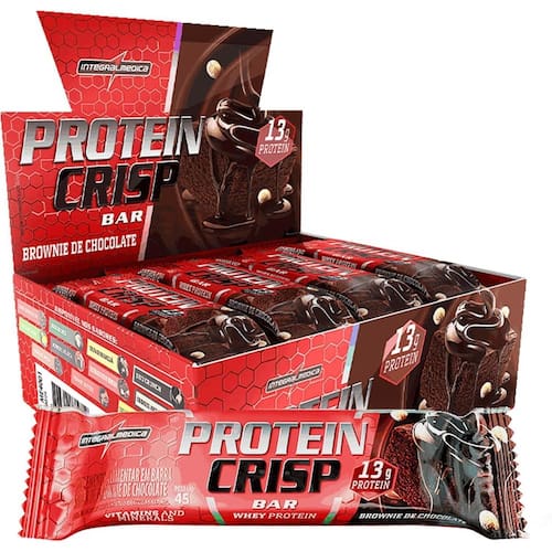 Protein Crisp Bar Brownie de Chocolate - Integralmédica Barra de Proteína Whey Protein Crisp Bar Brownie de Chocolate - Integralmédica Protein Crisp Bar Integralmedica 12un 45g Brownie de Chocolate Barra de proteína completa, unindo ótima qualidade na composição de seus nutrientes com praticidade de consumo. Protein Crisp Integralmédica é o snack com 13g de proteína por barra e baixa caloria. Ótima fonte de vitaminas, minerais e fibras, ajuda a saciar a fome e evitar o catabolismo. Pode ser facilmente encaixada em dietas para . Protein Crisp é formulada com Whey Protein e isenta de glúten pode ser consumida no pré e pós treino, entre as refeições lanches intermediários e substituta de sobremesas. Benefícios - Auxilia na manutenção da dieta; - Excelente opção de alimento saudável e proteico; - Alimento completo, com proteínas de alto valor biológico, carboidratos, vitaminas e minerais; - Excelente opção para refeições rápidas durante o dia; - Aumenta a quantidade de proteínas ingeridas na dieta. Ingredientes Blend proteico proteína concentrada de leite obtida de leite bovino, colágeno hidrolisado e proteína de soro do leite concentrada , recheio sabor de baunilha, cobertura sabor de chocolate ao leite, óleo de palma, crisp isolada de soja, frutooligossacarídeos fos , cacau em pó solúvel, mix de vitaminas e minerais ácido ascórbico, nicotinamida, acetato de DL-alfatocoferila, D-pantotenato de cálcio, sulfato de manganês, cloridrato de piridoxina, riboflavina, tiamina mononitrato, palmitato de retinila, sulfato cúprico, ácido N-pteroil-L-glutâmico, picolinato de cromo, D-biotina, colecalciferol e cianocobalamina , cloreto de sódio, edulcorante xarope de maltitol, umectante glicerol, aromatizante, emulsificante lecitina e conservante sorbato de potássio. Alérgicos: contém leite E derivados E derivados de soja. Pode conter amendoim, amêndoas, avelã, castanha-de-caju, castanha-do-pará, nozes E pecãs. Contém lactose. Não contém glúten.