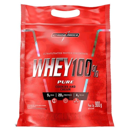 O Whey 100% Pure Pouch é o ideal e essencial para quem busca ganho de massa magra e recuperação muscular. Composto pela proteína concentrada do soro de leite, são 21 g de proteína por dose, 9,7 g de aminoácidos essenciais e 4,6 g de BCAA. Uma ótima opção para o pós treino, o Whey 100% Pure Pouch auxilia na manutenção da massa magra, possui baixo teor de carboidrato, gordura e sódio. Glúten. Alta qualidade para a sua suplementação, o Whey 100% Pure Integralmédica contém matéria-prima importada, e ótima absorção pelo organismo, evitando a sensação de inchaço após o consumo. A proteína do soro é a fonte mais nobre de proteína do leite com alto valor biológico, isso devido a sua alta concentração de aminoácidos essenciais e aminoácidos de cadeia ramificada (BCAA), esses aminoácidos têm papel fundamental na síntese de proteínas e construção muscular. Whey 100% Pure Integralmédica está disponível em 6 sabores, versões pote de 900g, pote de 450g, Pouch de 900g e Pouch de 1,8kg.