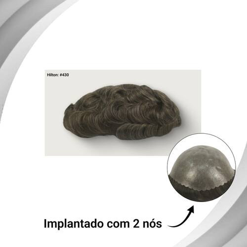 Prótese capilar masculina feita com fibra natural com frente + topo de tela sintética e