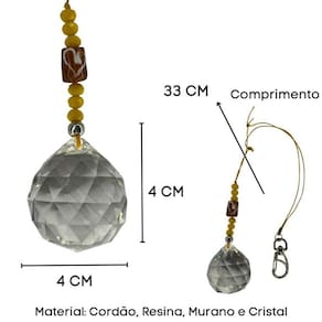 Cristal Facetado 40 mm transparente e 8 Contas de cristal 6 mm colorido para pendurar com argola e cordão de 33 cm.