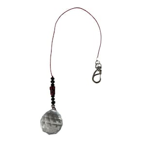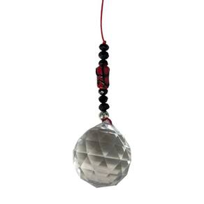 Cristal Facetado 40 mm transparente e 8 Contas de cristal 6 mm vermelho para pendurar com argola e cordão de 30 cm.