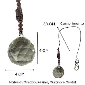 Cristal Facetado 40 mm transparente e 8 Contas de cristal 6 mm colorido para pendurar com argola e cordão de 33 cm.