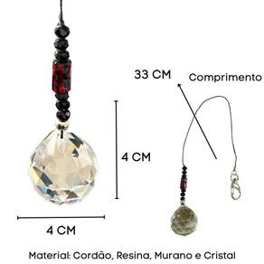 Cristal Facetado 40 mm transparente e 8 Contas de cristal 6 mm colorido para pendurar com argola e cordão de 33 cm.