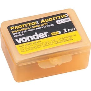 Conteúdo da embalagem1 Par de protetores auditivosAplicações e dicas de usoIndicado para locais com excesso de ruídosDestaques e diferenciais DETALHES TÉCNICOS Número do Certificado de Aprovação - CA11023 Nível de atenuação de ruído: 14 dB Material do plug: Silicone com flange Material do cordão: Pvc