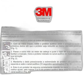 Descrição protetor auditivo do tipo inserção moldável, confeccionado em espuma, em formato de cone, com a base plana e o topo arredondado, de forma a proporcionar maior conforto ao usuário. O protetor é disponível em tamanho único, sendo que a característica de ser moldável faz com que seja adaptável à maioria dos condutos auditivos. O modelo 3m 1100 não possui cordão. Indicações de uso: os protetores auditivos de espuma moldável 3m são designados para inserção no canal auditivo, ajudando a reduzir a exposição aos níveis perigosos de ruído e outros sons indesejados. Deve ser utilizado mediante o conhecimento e aprovação das áreas de higiene, segurança e medicina do trabalho ou responsável pela empresa. Desempenho: testado de acordo com a norma ansi s12.6:2008 confortável para o uso em longos períodos de tempo ca:5674 atenuação: 29 db nrr o mais alto da categoria nrrsf = 16 db especificações: náo é reutilizável, ou seja os protetores auriculares são descartáveis. O tipo de proteção auditiva é na orelha. Detalhes diâmetro da base: 1,3 cm / diâmetro do topo: 1,0 formato: cilíndrico cor: alaranjado peso aproximado: 1.0g/par verificação da vedação: sempre ajuste os protetores a fim de vedar o canal auditivo. Quando os protetores estão corretamente inseridos, sua voz deve parecer oca e os sons ao seu redor não devem parecer tão altos quanto anteriormente. Tente puxar levemente o protetor auditivo; ele não deve se mover facilmente. Se o protetor se mover facilmente, remova-o e insira-o, com cuidado, o mais profundamente possível no canal auditivo, seguindo as instruções de colocação. Verifique frequentemente a vedação durante o tempo em que está usando o protetor. Se os protetores se deslocarem, a proteção ao ruído pode ser perdida. Retirando os protetores auditivos: para maior conforto, gire suavemente o protetor para desfazer a vedação, antes de retirá-lo. Cuidados e : atenção: reinserir protetores auditivos sujos em suas orelhas pode causar desconforto e/ou irritação da pele no canal auditivo. Não utilize cremes ou loções para as mãos imediatamente antes de roletar os protetores auditivos e inseri-los no canal auditivo, pois estas substâncias podem danificar os protetores. Não tente limpar protetores auditivos de espuma com água, álcool ou outros desinfetantes que possam agredir os protetores. Sempre lave e enxague as mãos antes de colocar os protetores auditivos. Não lave protetores auditivos de espuma. Troque os protetores auditivos de espuma sujos por um novo par. Observe se os protetores não se encontram danificados antes de cada uso. Se observar algum corte ou outro dano, jogue os protetores fora e substitua-os por um novo par. Importante: deixar de seguir as indicações de uso e ajuste conforme instruções da embalagem pode reduzir a efetividade do protetor auditivo. Vida útil: após aberta a embalagem, a vida útil máxima deste protetor é de 1 dia, considerando-se o uso contínuo em uma jornada média de trabalho de 8 horas, sempre respeitado o seu prazo máximo de validade descrito na embalagem e respeitadas as orientações contidas no boletim técnico. Atenção: estes protetores deverão ser antecipadamente substituídos por sofrerem influência do ambiente e da atividade de trabalho, mesmo que não tenham atingido sua vida útil máxima. A deve ser feita sempre que se apresentarem deformados, quebrados, rasgados, endurecidos ou com alteração em sua forma, dimensão, cor ou maciez .As imagens são meramente ilustrativas