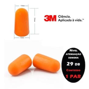 Descrição protetor auditivo do tipo inserção moldável, confeccionado em espuma, em formato de cone, com a base plana e o topo arredondado, de forma a proporcionar maior conforto ao usuário. O protetor é disponível em tamanho único, sendo que a característica de ser moldável faz com que seja adaptável à maioria dos condutos auditivos. O modelo 3m 1100 não possui cordão. Indicações de uso: os protetores auditivos de espuma moldável 3m são designados para inserção no canal auditivo, ajudando a reduzir a exposição aos níveis perigosos de ruído e outros sons indesejados. Deve ser utilizado mediante o conhecimento e aprovação das áreas de higiene, segurança e medicina do trabalho ou responsável pela empresa. Desempenho: testado de acordo com a norma ansi s12.6:2008 confortável para o uso em longos períodos de tempo ca:5674 atenuação: 29 db nrr o mais alto da categoria nrrsf = 16 db especificações: náo é reutilizável, ou seja os protetores auriculares são descartáveis. O tipo de proteção auditiva é na orelha. Detalhes diâmetro da base: 1,3 cm / diâmetro do topo: 1,0 formato: cilíndrico cor: alaranjado peso aproximado: 1.0g/par verificação da vedação: sempre ajuste os protetores a fim de vedar o canal auditivo. Quando os protetores estão corretamente inseridos, sua voz deve parecer oca e os sons ao seu redor não devem parecer tão altos quanto anteriormente. Tente puxar levemente o protetor auditivo; ele não deve se mover facilmente. Se o protetor se mover facilmente, remova-o e insira-o, com cuidado, o mais profundamente possível no canal auditivo, seguindo as instruções de colocação. Verifique frequentemente a vedação durante o tempo em que está usando o protetor. Se os protetores se deslocarem, a proteção ao ruído pode ser perdida. Retirando os protetores auditivos: para maior conforto, gire suavemente o protetor para desfazer a vedação, antes de retirá-lo. Cuidados e : atenção: reinserir protetores auditivos sujos em suas orelhas pode causar desconforto e/ou irritação da pele no canal auditivo. Não utilize cremes ou loções para as mãos imediatamente antes de roletar os protetores auditivos e inseri-los no canal auditivo, pois estas substâncias podem danificar os protetores. Não tente limpar protetores auditivos de espuma com água, álcool ou outros desinfetantes que possam agredir os protetores. Sempre lave e enxague as mãos antes de colocar os protetores auditivos. Não lave protetores auditivos de espuma. Troque os protetores auditivos de espuma sujos por um novo par. Observe se os protetores não se encontram danificados antes de cada uso. Se observar algum corte ou outro dano, jogue os protetores fora e substitua-os por um novo par. Importante: deixar de seguir as indicações de uso e ajuste conforme instruções da embalagem pode reduzir a efetividade do protetor auditivo. Vida útil: após aberta a embalagem, a vida útil máxima deste protetor é de 1 dia, considerando-se o uso contínuo em uma jornada média de trabalho de 8 horas, sempre respeitado o seu prazo máximo de validade descrito na embalagem e respeitadas as orientações contidas no boletim técnico. Atenção: estes protetores deverão ser antecipadamente substituídos por sofrerem influência do ambiente e da atividade de trabalho, mesmo que não tenham atingido sua vida útil máxima. A deve ser feita sempre que se apresentarem deformados, quebrados, rasgados, endurecidos ou com alteração em sua forma, dimensão, cor ou maciez .As imagens são meramente ilustrativas