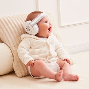 Os protetores auriculares contam com espumas redutoras de ruído e acolchoamento macio, que protegem a audição sensível dos bebês. A alça é antiderrapante e a faixa foi desenvolvida especialmente para a cabecinha delicada do pequeno, ajustando-se com suavidade, sem apertar.