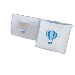 As peças são confeccionadas em tecido estampado 100% algodão e tecido liso 50% algodão e 50% poliéster, garantindo conforto e maciez para o seu bebê. O enchimento é produzido em 100% poliéster, proporcionando aconchego e proteção durante o sono.