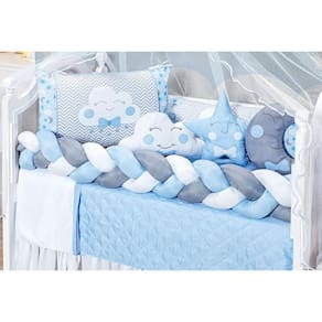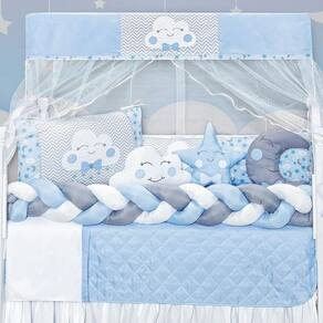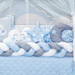 Garanta o conforto e a proteção que seu bebê merece com o Kit Berço Trança Céu Lua Nuvem Estrela Azul Menino 13 Peças. Aproveite essa oportunidade e adquira agora mesmo o seu!