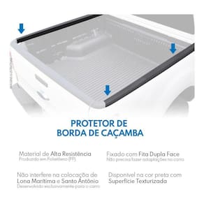 Protetor Borda Tampa E Laterais Ford Ranger Cd 2013 Diante Preto Especifico Protetor de borda lateral caçamba 2 peçasE protetor de borda da tampa traseira 1 peçaMontadora: fordModelo: ranger cabine dupla todas as versões Ano: 2013 em dianteAs fotos do produtos são meramente ilustrativas.Produto fabricado em poliuretano de alta qualidade e resistência.Modelo que oferece proteção contra batidas, riscos na borda da caçamba de sua pick-up.Modelo de fácil instalação com fita dupla face a utilização pode ser feita com ou sem capota marítima.Apenas limpe o local da aplicação para maior aderência,retire a fita de proteção da fita dupla face e cole o produto sobre o local.Cor:Produto disponível na cor pretaComposição:03-protetoresNosso horário de atendimento é de segunda a sexta das 9 as 17 horas exceto feriados .Boa compra...Atenção: as compras realizadas em nome de pessoa jurídica estão sujeitas à cobrança de icms, conforme protocolo icms 41, de 4 de abril de 2008. Caso você tenha dúvidas sobre o percentual a ser aplicado, consulte a cláusula segunda, 1 do referido protocolo.