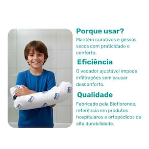 probanho infantil • protetor de braço infantil • capa para gesso banho • proteção curativo criança • bioflorence infantil • protetor impermeável braço • capa para curativo banho • vedação compressiva infantil