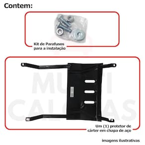 O protetor de cárter é o escudo que protege o cárter do motor. O cárter é o recipiente metálico onde fica acumulado o óleo do motor, responsável pela Lubrificação durante o seu funcionamento. Como está localizado na parte mais baixa do motor o cárter pode sofrer danos, mesmo pequenas batidas Podem ocasionar o vazamento de todo óleo do motor. Apesar de sua importância, o protetor de cárter é considerado só um acessório pelos fabricantes dos veículos E poucos saem de fábrica com ele. Protetor de Carter para o Fiat Elba 1986 a 1996. CARACTERÍSTICAS: - Confeccionado em Chapa de Aço - Modelo Específico para o Veículo - Fácil Troca de Óleo - Cor: Preto Fosco - Referência: 512p2 ITENS INCLUSOS: - Um 1 Protetor de cárter do modelo anunciado. - Um 1 Jogo de parafusos para fixação. DIMENSÕES - Comprimento: 86 cm - Largura: 56 cm - Altura: 7 cm - Espessura: 1,2 mm INSTALAÇÃO A instalação é feita de forma simples, podendo ser feita por você mesmo. de 30 dias para defeitos de fabricação.