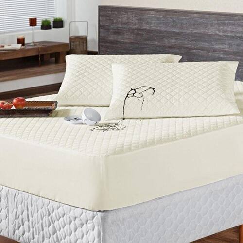 PRODUTO COMPOSTO POR: 1 PROTETOR IMPERMEAVEL PARA COLCHAO 2,03M X 1,93M X 40CM COMPOSICAO TECIDO SUPERIOR 100%POLIESTER TECIDO INTERNO IMPERMEAVEL 50%POLIETILENO 50%POLIPROPILENO ENCHIMENTO 100% POLIESTER TECIDO INFERIOR 100% POLIPROPILENO Marca: Enxovais Aquarela | Estampa: Não se Aplica | Medidas: 1 PROTETOR IMPERMEAVELPARA COLCHAO 2,03M X 1,93M X 40CM | Número de Peças: Avulsa | Material: Poliéster | Cor Predominante: Palha | Cama Indicada: King