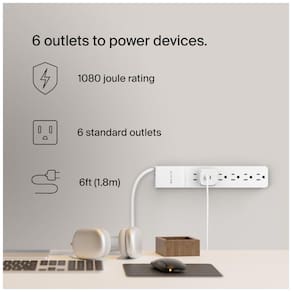 Tira de alimentação de proteção contra surtos de várias saídas Transforme 1 tomada em 6 tomadas CA protegidas contra surtos com este cabo de extensão de energia compacto. Ele fornece energia para vários dispositivos de computação e periféricos, de iPhones, tablets e smartphones a laptops e projetores. Estação de trabalho mais limpa para uma mente mais clara. Proteja seus dispositivos e eletrodomésticos A régua elétrica tem uma classificação de energia de 1.080 Watts, fornecendo um hub de extensão de energia confiável para proteger monitores, discos rígidos e outros itens de desktop. Ele protege seus dispositivos eletrônicos contra sobrecarga, curto circuito, picos de energia, relâmpagos ou flutuações. Compacto, resistente e com economia de espaço as tomadas amplamente espaçadas oferecem uma área ampla para encaixar plugues grandes e blocos de carregador. Seu perfil fino é ideal para fornecer tomadas adicionais em espaços apertados, home office e salas de jogos. Projetado com um estojo durável que protege os circuitos contra fogo, danos e ferrugem. Confira as especificações completas amperagem máxima de pico de 48.000 A, cabo de alimentação de 1,8 metros , 6 pés e 6 tomadas CA padrão com supressor de surtos. Plugue giratório e tomadas CA extras Construído com um plugue CA giratório de 360 graus para acesso conveniente a qualquer tomada de parede de todas as direções. Cada porta oferece carregamento otimizado para iPhones, smartphones, consoles de jogos e muito mais. Conecte simultaneamente até seis dispositivos nesta tomada de segurança Marca: Não Informado