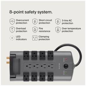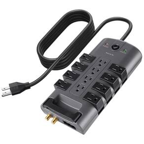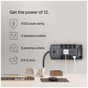 Tira de alimentação multi tomada protetora contra surtos alimente tudo em sua mesa com um único cabo de extensão compacto e protegido contra surtos. Este cabo de alimentação respeitável oferece 12 tomadas CA com proteção contra surtos para carregar seu computador, laptop, telefone, câmera e muito mais. Uma estação de carregamento para uma secretária organizada. Tomada Pivot Compacta com Economia de Espaço Desenvolvida com tomadas rotativas para permitir espaço extra para grandes adaptadores AC e carregadores. O sistema de gerenciamento de cabos mantém os cabos organizados. O design fino com um cabo resistente de 2,4 metros de comprimento o torna ideal para escritórios domésticos, estações de trabalho e salas de jogos. Barra de alimentação com proteção de linha telefônica Com uma proteção de telefone ou fax RJ11 1 in 2 out para garantir conexões de linha telefônica abertas e contínuas. Ele também fornece uma proteção de cabo coaxial para proteger a caixa de cabo e as conexões de satélite. A carcaça resistente a danos protege os circuitos contra fogo, impacto e ferrugem. Confira as especificações completas tensão máxima de pico de 6.000 volts, 15A AC 4 tomadas estacionárias e 8 tomadas rotativas, 125V, 1875W e 150K Hz 100M Hz EMI, RFI Noise Filter. Proteja seus dispositivos e eletrodomésticos O fio elétrico tem uma classificação de energia de 4.320 Watts, fornecendo um cabo de extensão de energia confiável para proteger impressoras, eletrodomésticos e sistemas de home theater. Ele protege seus dispositivos eletrônicos contra sobrecarga, curto circuito, picos de energia, relâmpagos ou flutuações Marca: Não Informado