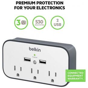 Proteja três dispositivos ou aparelhos eletrônicos e carregue dois dispositivos móveis com o suporte de parede USB Surge Plus com suporte. O protetor contra surtos se conecta a qualquer tomada CA em sua casa ou escritório e ainda possui uma borda para exibir ou zenar seu smartphone ou reprodutor de mídia. As duas portas USB dos protetores contra surtos carregam uma ampla variedade de dispositivos móveis, de smartphones a tablets e reprodutores de mídia. E com 2.s de energia compartilhada, as portas carregam mais rapidamente do que as portas USB tradicionais. Além disso, você pode manter seu smartphone, tablet ou reprodutor de mídia fora do balcão ou do chão, exibindo o no conveniente suporte do protetor contra surtos. SEGURANÇA DA PROTEÇÃO CONTRA SURTOS Se um protetor contra surtos ficar quente ao toque, desligue a unidade imediatamente. Nunca encadeie as réguas de energia em outras réguas de energia ou cabos de extensão. Nunca permita que um filtro de linha seja exposto a um ambiente úmido. Evite executar muitos aparelhos de alto consumo de energia através de um único protetor contra surtos de uma só vez. Eletrônicos de alto consumo de energia, os aparelhos incluem unidades de AC de janela, aquecedores, geladeiras, lavadoras, secadoras, etc. Apenas um filtro de linha deve ser conectado a uma única tomada elétrica de duas tomadas. Nunca cubra um estabilizador com carpete, móveis ou qualquer coisa que possa limitar ou impedir a circulação de ar. IMPORTANTE Os componentes de proteção dentro dos protetores contra surtos que absorvem picos de sobretensão acabarão se desgastando. A maioria das estimativas coloca a vida útil média de um protetor contra surtos de 3 a 5 anos. Tipo de conector Power Nema 5 15 4 pinos USB tipo A somente energia Componentes incluídos protetor de surto externo Marca: Não Informado