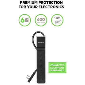 Tira de alimentação de proteção contra surtos de várias saídas Transforme 1 tomada em 6 tomadas CA protegidas contra surtos com este cabo de extensão de energia compacto. Ele fornece energia para vários dispositivos de computação e periféricos, de iPhones, tablets e smartphones a laptops e projetores. Estação de trabalho mais limpa para uma mente mais clara. Proteja seus dispositivos e eletrodomésticos A régua elétrica tem uma classificação de energia de 600 Watts, fornecendo um hub de extensão de energia confiável para proteger monitores, discos rígidos e outros itens de desktop. Ele protege seus dispositivos eletrônicos contra sobrecarga, curto circuito, picos de energia, relâmpagos ou flutuações. Compacto, resistente e com economia de espaço as tomadas amplamente espaçadas oferecem uma área ampla para encaixar plugues grandes e blocos de carregador. Seu perfil fino é ideal para fornecer tomadas adicionais em espaços apertados, home office e salas de jogos. Projetado com um estojo durável que protege os circuitos contra fogo, danos e ferrugem. Produto confiável e proteção superior Apoiado e protegido pela garantia de equipamentos conectados de US 15.000, compre com confiança para proteger seus dispositivos contra surtos destrutivos. Confira as especificações completas amperagem máxima de pico de 48.000 A, cabo de alimentação de 1,8 m, 6 pés e 6 tomadas AC padrão com supressor de picos. Plugue Giratório e Receptáculos CA Extra Construído com um plugue CA giratório de 360 graus para acesso conveniente a qualquer tomada de parede de todas as direções. Cada porta oferece carregamento otimizado para iPhones, smartphones, consoles de jogos e muito mais. Conecte simultaneamente até seis dispositivos nesta tomada de segurança Marca: Não Informado