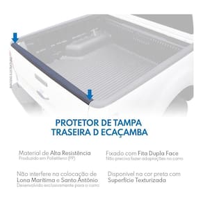Especificações especificação técnica: - fabricado em polietileno pp - disponível na cor preta - fita dupla 3m - específico para o modelo do carro - garante proteção para a tampa traseira da caçamba do carro - encaixe sob medida. - fixação na tampa traseira da caçamba.