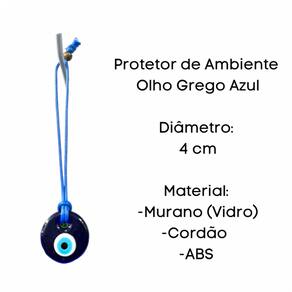 O Protetor de Ambiente Olho Grego da Bialluz é um instrumento mágico de proteção que muda e direciona as energias em diversos ambientes atraindo as energias positivas e afastando qualquer negatividade. É um ótimo catalisador de boas energias, indicamos que use no espelho do carro, acima da porta de entrada do seu lar, da empresa ou espaço comercial para proteger o ambiente e as pessoas.