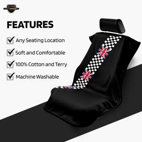 Seat Armour Toalha protetora de assento - bandeira britânica quadriculada - toalha de capa de assento de carro lavável na máquina macia - fácil de instalar, toalha de assento de carro multiuso - preta