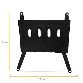 Fabricado em Aço Carbono com pintura na cor Preto, sendo um material leve e resistente, possuindo uma alta durabilidade e um excelente acabamento.