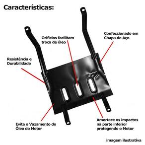O protetor de cárter é o escudo que protege o cárter do motor. O cárter é o recipiente metálico onde fica acumulado o óleo do motor, responsável pela Lubrificação durante o seu funcionamento. Como está localizado na parte mais baixa do motor o cárter pode sofrer danos, mesmo pequenas batidas Podem ocasionar o vazamento de todo óleo do motor. Apesar de sua importância, o protetor de cárter é considerado só um acessório pelos fabricantes dos veículos E poucos saem de fábrica com ele. Protetor de Carter Chevrolet Celta 2000 a 2017. CARACTERÍSTICAS: - Confeccionado em Chapa de Aço - Modelo Específico para o Veículo - Fácil Troca de Óleo - Cor: Preto - Referência: 208p2 ITENS INCLUSOS: - Um 1 Protetor de cárter do modelo anunciado. - Um 1 Jogo de parafusos para fixação. DIMENSÕES - Comprimento: 79 cm - Largura: 46 cm - Altura: 15 cm - Espessura: 1,2 mm INSTALAÇÃO A instalação é feita de forma simples, podendo ser feita por você mesmo. de 30 dias para defeitos de fabricação. em até 3 dias úteis, em caso de boleto POLÍTICA DE TROCA Sempre estamos interessados em sua satisfação. Caso não receba o produto exatamente como no anúncio, com algum defeito ou no transporte, Você poderá trocar e devolver a qualquer momento, sem pressa, sem prazo e principalmente sem custos desde que o produto esteja sem uso e na mesma condição da data da compra . No caso de devolução por compra de tamanho errado, desistência ou mudança de intenção, Da mercadoria nova.
