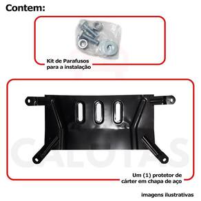 ITENS INCLUSOS: - Um 1 Protetor de cárter do modelo anunciado. - Um 1 Jogo de parafusos para fixação.