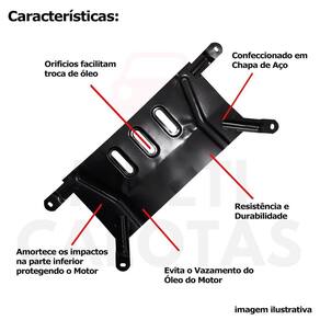 CARACTERÍSTICAS: - Confeccionado em Chapa de Aço - Modelo Específico para o Veículo - Fácil Troca de Óleo - Cor: Preto - Referência: 750p2
