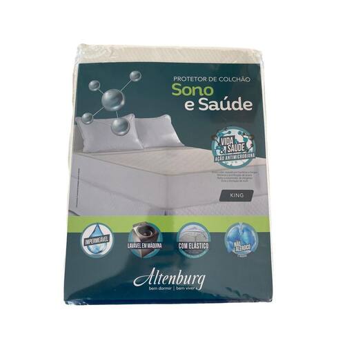 Protetor De Colchão Sono E Saude Impermeável King Altenburg O protetor de colchão Sono e Saúde possui ação antimicrobiana contra fungos, ácaros e bactérias. É impermeável e impede a passagem de água, óleos e líquidos para o colchão , mantendo limpo e com aparência de novo por muito mais tempo. Produzido com tecido semelhante ao do colchão em 100% poliéster, o Protetor de Colchão Sono e Saúde Slim é ideal para quem quer proteger o colchão sem interferir na aparência da cama. Fácil e prático de usar, possui ajuste perfeito ao colchão e pode ser lavado em máquina. Tecido Superior: 100% poliéster Tecido Inferior: 100% poliuretano. Medida: 1,93x2,03x40cm. - Impermeável: impede a passagem de água, óleos e líquidos para o colchão - Possui ajuste perfeito ao colchão - Pode ser lavado em máquina - Fácil e prático de usar' Cor: Branco Conteúdo da Embalagem: - 1 Protetor de Colchão King Cuidados com o Produto: - Lavar a 40°C - Não alvejar - Não secar em tambor - Não passar - Não lavar profissional Marca: Não Informado Ean: 7909202424450
