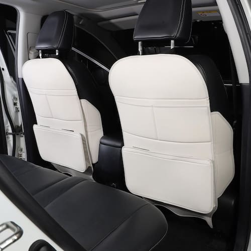 Dimensões do dispositivo de proteção do assento do carro: 76,2 cm x 45,7 cm x 0,5 cm Peso: aproximadamente 450 g Quantidade: 2 peças Função: Proteja os bancos traseiros do seu carro, evite que as crianças pisem acidentalmente na parte de trás dos bancos e forneça espaço de armazenamento adicional. Material: O tapete para assento de carro é feito com exterior semelhante a couro. Seu artesanato requintado proporciona excelente textura e qualidade superior, elegante e durável. Fácil instalação: basta prendê-lo com fivelas. Compatibilidade: Adequado para qualquer carro, SUV e caminhão. Limpeza: Limpe suavemente manchas e sujeira na superfície do couro com um pano úmido - Protetor de assento traseiro: pode evitar que as crianças pisem, arranhem, manchem, usem e sujem o encosto do assento, minimizando os danos causados pelos calçados e mantendo o assento em perfeitas condições por muitos anos. - Organizador de carro: o dispositivo de proteção do assento vem com um organizador de armazenamento adicional anexado a ele. Este organizador de armazenamento ajuda os usuários a armazenar e organizar itens, oferecendo ao assento uma funcionalidade prática adicional. - Fácil de limpar: o dispositivo de proteção do assento traseiro da criança apresenta uma aparência de couro de alta qualidade, inodoro, artesanato requintado e excelente sensação ao toque, além de ser muito durável. Mais importante, é muito fácil de limpar e só precisa ser limpo com um pano úmido para mantê-lo limpo e brilhante. - Cenários aplicáveis: o protetor universal de encosto de banco de 76,2 cm x 63,5 cm x 0,5 cm o torna adequado para qualquer carro, SUV e caminhão, com uma espessura de 0,5 cm que é suficiente para resistir a danos externos causados por pisadas, reduzindo o impacto de pisadas e manchas no encosto do assento. - Fácil de instalar: esta capa traseira de assento de carro apresenta um design de fita de alta densidade que permite o ajuste livre do comprimento conforme necessário, com fivelas superiores e inferiores seguras para fixação firme. A fita inferior pode ser escondida de forma inteligente no assento sem afetar a estética geral.