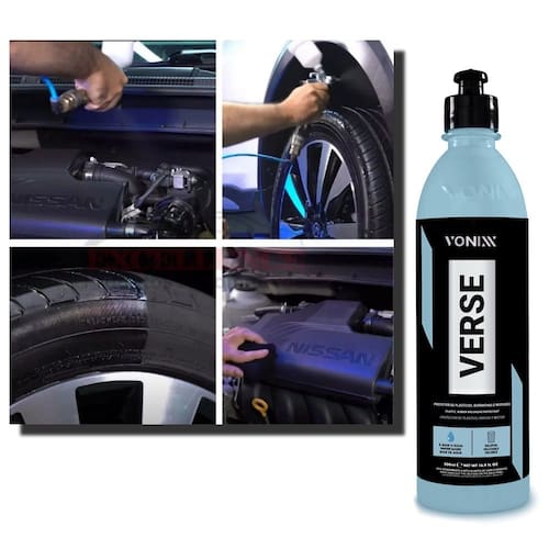 VERSE é um renovador de plásticos à base d´água que condiciona e protege o material contra raios UV. Pode ser usado em plásticos (pára-choques, painéis, laterais de portas) borrachas (caixas de rodas, mangueiras do motor, pneus e borrachas de portas) e superfícies metálicas, em especial o compartimento do motor e chassis. VERSE pode ser utilizado em diversas diluições, a depender da superfície e característica requerida.