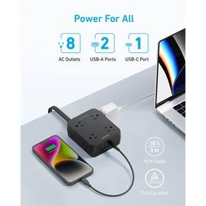 - Potência 11 em 1: possui 8 tomadas CA, 2 portas USB-A e 1 porta USB-C — o suficiente para manter uma sala inteira ligada.