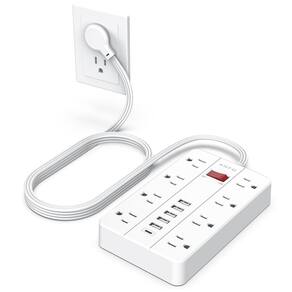 - Régua de alimentação multitomadas: 8 tomadas CA, 6 tiras de alimentação USB (1USB C) com proteção contra surtos de 1080 joule para proteger seus eletrônicos de alta qualidade de picos e picos repentinos, os disjuntores integrados dispararão automaticamente para proteger seus dispositivos quando a energia estiver sobrecarregada