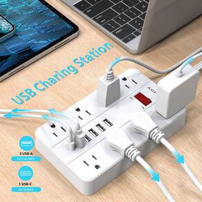 - Estação de carregamento 6USB: o filtro de linha com porta USB C pode carregar até 5V/3A. As portas USB-A podem carregar até 5V/2,4A no máximo. 2 tipos de portas USB podem detectar dispositivos carregados e proporcionar velocidade de carregamento ideal, dando a você mais opções de carregamento; adequado para seu iPhone, iPad, teblet, fone de ouvido etc