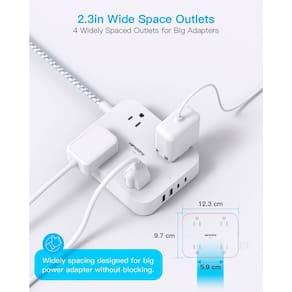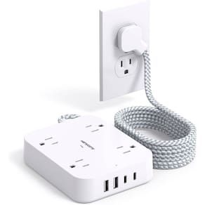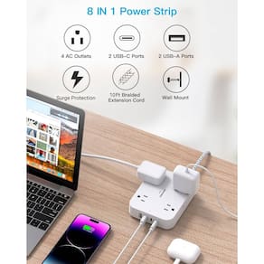 Cabo de extensão com 4 portas USB (2 USB C), filtro de linha de mesa com cabo longo, plugue plano, suporte de parede para escritório, casa, faculdade, dormitório, essencial - ?Cabo de extensão com várias tomadas? Design 8 em 1, que pode carregar 8 dispositivos ao mesmo tempo. 4 tomadas CA (máximo 15A/1875W) são separadas sem bloquear uma à outra. Adequado para a maioria dos aparelhos como telefones, laptops, secadores de cabelo e muito mais. Um acessório essencial para dormitório universitário, casa, escritório, quarto, cozinha e etc - ?Fita de tomada plana?Com cabo de extensão de plugue plano ultrafino de 0,9 cm e design de ângulo reto de 45°, o plugue de parede plano pode fechar facilmente à parede e se esconder na parte de trás de móveis, cama ou mesa de cabeceira, e não bloqueia o receptáculo inferior da sua tomada de parede duplex, economizando mais espaço - ?Filtro de energia com portas de carregamento rápido USB C?Adicionadas 2 portas USB C extras para seus dispositivos, a porta USB C pode carregar até 5V/3A. Adequado para telefones e tablets, profundamente amado pelos usuários. As portas USB A podem carregar até 5 V/2,4 A no máximo. Todas as portas USB de saída são 5V/3A, 15W máximo que é 30% mais rápido do que outros filtros de linha - ?Sobreposição de sobretensão? Protetor contra surtos de filtro de linha embutido 900 joules proteção contra surtos para o seu telefone, computador e outros aparelhos contra picos e flutuações. O interruptor liga/desliga com disjuntor integrado para proteção contra sobrecarga de todas as tomadas. Ele cortará automaticamente a energia para proteger os dispositivos conectados quando o surto de tensão for esmagador - ?Proteção de segurança múltipla e serviço pós-serviço?Temos certificados FCC, RoHS, ETL. O filtro de linha USB C tem proteção contra sobrecarga, proteção contra sobretensão, proteção contra curto-circuito, proteção contra sobrecorrente e proteção contra superaquecimento. O invólucro de policarbonato à prova de fogo com retardador de chama a 750 °C o torna mais durável e mais longo