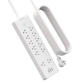 - ?12 saídas 3 portas USB para qualquer uso?Cabo de extensão longo com várias tomadas, 12 tomadas e 3 portas USB em um filtro de tomada plana que permite que você carregue vários dispositivos ao mesmo tempo. 3 portas USB de alimentação fornecem corrente de carregamento máxima de 5V/2,4A em uma porta e saída total de 3A/15W, que pode economizar até 1 hora do que as portas USB padrão. E é adequado para a maioria dos celulares, laptops, tablets, câmeras sem uma variedade de conversores. Economize espaço e organize sua área de trabalho.