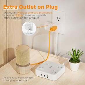 Tampa de tomada TESSAN com tomada extra no plugue, filtro de alimentação com 3 USB (2 USB C), cabo de extensão plano de 5 pés, proteção de 900 Joules, filtro de alimentação de plugue plano para itens essenciais de escritório doméstico - Cabo de extensão da tampa da tomada: uma tomada AC extra com tampa de plugue, economizando espaço e tornando-a elegante e organizada; o design do filtro elétrico permite que a família carregue dispositivos simultaneamente em vários locais, enquanto compartilha no máximo 1250 W com outras tomadas - Faixa de alimentação de plugue plano 8 em 1: a régua de alimentação USB pode ser expandida para 5 tomadas CA (máximo de 1250 W) e 3 portas USB (USB C duplo); A tomada de extensão de plugue pode carregar 8 dispositivos simultaneamente sem bloquear, atendendo às suas necessidades de carregamento em casa - Estação de carregamento USB C: o protetor de sobretensão com portas USB possui USB C (máximo de 15 W) para carregamento rápido de telefone, tablet e outros dispositivos, reduzindo o tempo de espera; e USB A com capacidade máxima de 12 W; o cabo de extensão de 5 pés e 3 pinos atende às suas várias necessidades de carregamento - Proteção contra sobretensão 900J: o filtro de energia TESSAN com proteção contra sobretensão protege seus dispositivos, como computadores e outros aparelhos elétricos, de picos e picos de energia; régua de alimentação com portas USB fornecendo um ambiente de carregamento seguro e confiável - Saída protetora de sobretensão montável: o design de 2 orifícios de montagem permite que essa tomada elétrica seja instalada de forma estável em vários locais; ao não ocupar a mesa ou o espaço no chão, cria um ambiente de vida e trabalho aconchegante