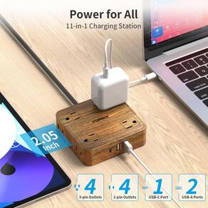?Estação de carregamento tudo-em-um?3 slots USB de carregamento inteligente e 8 tomadas bem espaçadas com um interruptor liga/desliga 2 em 1 e disjuntor com indicador LED que se desligará automaticamente se estiver sobrecarregado. Alta eficiência para carregar telefone, Airpods, fones de ouvido, smartwatch, alto-falante bluetooth, controlador ps4, tablet, computador, laptop, TV, abajur, impressora, scanner e alguns outros dispositivos elétricos.