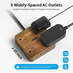 ?Saídas com espaçamento amplo?8 tomadas não interferentes podem caber em 4 adaptadores grandes. Esta central elétrica de grão de madeira de 5 pés (corrente nominal: 10A) foi projetada com tensões adaptáveis: 110V-240V. Ele se adaptará automaticamente à tensão da tomada de parede em que está conectado. utilizado nos Estados Unidos (110-125V), sua potência máxima é 125V x 10A = 1250W. (Fórmula de cálculo: P = UI.) Este bloco de régua de alimentação quadrado com grande compatibilidade, potência máxima de até 2400W, atenderá absolutamente às suas necessidades!