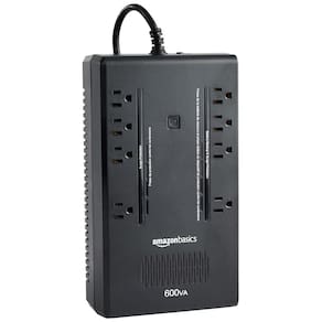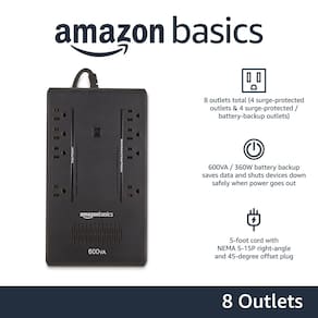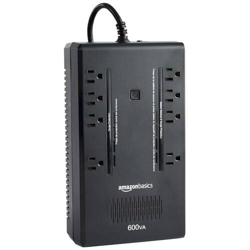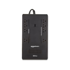 Amazon Basics Standby UPS Battery Backup 600VA 360W, fonte de alimentação ininterrupta, 8 tomadas para proteção contra queda de energia, compacta, preta