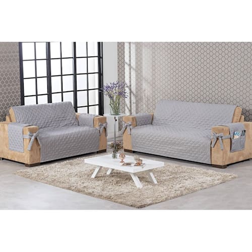 Protetor de sofá 2 e 3 lugares com laço e porta controle lateral cinza