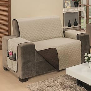 Confeccionado com tecido superior e inferior 100% microfibra, enchimento em 100% poliéster, com forro IMPERMEÁVEL 100% polipropileno e com acabamento em viés, agora a qualidade e o conforto do seu sofá estão garantidos. Matelado em ultrassônico formato de losangos, tamanho 5x5, o tecido do seu protetor fica mais firme, trazendo sofisticação, beleza e conforto ao seu sofá. O IMPERMEÁVEL protege seu sofá de bebidas ou qualquer tipo de liquido que venha cair sobre ele. Além disso, outra grande vantagem deste lindo protetor é que ele é dois em um, pois ele possui dupla face e pode ser dos dois lados, com cada lado de uma cor, para você poder variar ainda mais o visual do seu ambiente, sempre que quiser. Cada protetor possui porta objetos em um dos braços do sofá, podendo ser utilizado nas duas faces. Além disso, o protetor garante alta proteção ao seu sofá, conservando-o muito mais, por um tempo prolongado.
