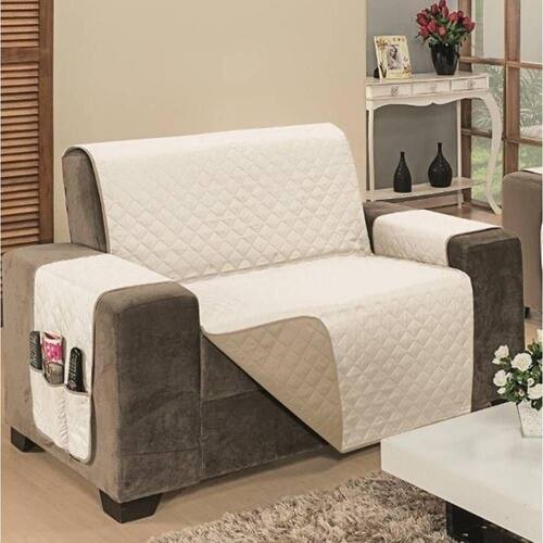 O protetor de sofá e suas especificações:Confeccionado com tecido superior e inferior 100% microfibra, enchimento em 100% poliéster, com forro IMPERMEÁVEL 100% polipropileno e com acabamento em viés, agora a qualidade e o conforto do seu sofá estão garantidos. Matelado em ultrassônico formato de losangos, tamanho 5x5, o tecido do seu protetor fica mais firme, trazendo sofisticação, beleza e conforto ao seu sofá. O IMPERMEÁVEL protege seu sofá de bebidas ou qualquer tipo de liquido que venha cair sobre ele. Além disso, outra grande vantagem deste lindo protetor é que ele é dois em um, pois ele possui dupla face e pode ser dos dois lados, com cada lado de uma cor, para você poder variar ainda mais o visual do seu ambiente, sempre que quiser. Cada protetor possui porta objetos em um dos braços do sofá, podendo ser utilizado nas duas faces. Além disso, o protetor garante alta proteção ao seu sofá, conservando-o muito mais, por um tempo prolongado. Para que serve o protetor?O protetor impermeável aumenta a durabilidade do seu sofá, protegendo-o de bebidas ou qualquer tipo de liquido que venha cair sobre ele e é considerado uma peça ideal para modernizar o seu ambiente e deixá-lo ainda mais elegante, renovando o visual de sua sala ou escritório. Além disso, ele protege e aumenta a durabilidade do seu sofá de uma maneira muito prática, moderna e bonita. Conteúdo da Embalagem: 01 - Protetor para Sofá de 2 Lugares, sendo:Capa: 1,90m x 1,20m | 2 Braços: 0,80cm x 0,40cm (braço do lado direito com porta objetos)(Medida total do produto 2,80m x 1,90m) Veste sofá com as seguintes medidas aproximadas: Protetor de 2 Lugares:Altura total do sofá: 97cmProfundidade do assento: 55cmLargura máxima do assento: 1,20mAltura máxima do encosto: 70cmLargura máxima do braço: 27cmAltura do assento: 50cmLargura total do sofá: 1,89m Composição:Tecido Superior e Inferior: 100% microfibraEnchimento: 100% poliésterForro: 100% polipropilenoAcabamento: Em viés e matelado impermeável em todo o protetor Dupla Face Acompanha porta objetos nos dois protetoresAcabamento em viés