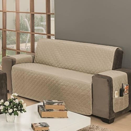 Confeccionado com tecido superior e inferior 100% microfibra, enchimento em 100% poliéster, com forro IMPERMEÁVEL 100% polipropileno e com acabamento em viés, agora a qualidade e o conforto do seu sofá estão garantidos. Matelado em ultrassônico formato de losangos, tamanho 5x5, o tecido do seu protetor fica mais firme, trazendo sofisticação, beleza e conforto ao seu sofá. O IMPERMEÁVEL protege seu sofá de bebidas ou qualquer tipo de liquido que venha cair sobre ele. Além disso, outra grande vantagem deste lindo protetor é que ele é dois em um, pois ele possui dupla face e pode ser dos dois lados, com cada lado de uma cor, para você poder variar ainda mais o visual do seu ambiente, sempre que quiser. Cada protetor possui porta objetos em um dos braços do sofá, podendo ser utilizado nas duas faces. Além disso, o protetor garante alta proteção ao seu sofá, conservando-o muito mais, por um tempo prolongado.