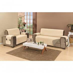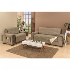 Protetor De Sofá Dupla Face Manu 2 E 3 Lugares King - Cáqui/palha