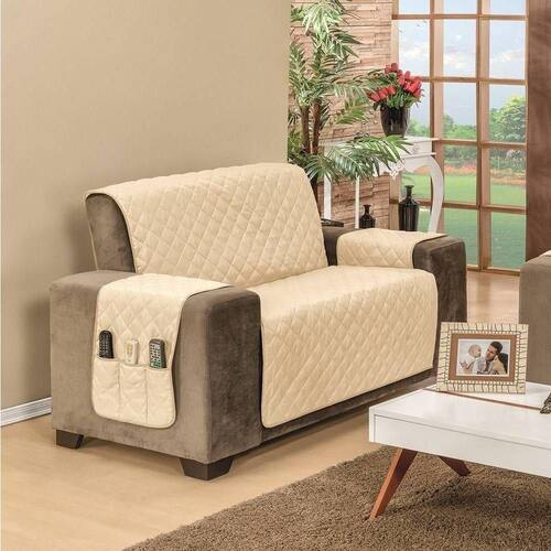 Confeccionado com tecido superior e inferior 100% microfibra, enchimento em 100% poliéster e com acabamento em viés, agora a qualidade e o conforto do seu sofá estão garantidos. Matelado em formato de losangos, tamanho 5x5, o tecido do seu protetor fica mais firme, trazendo sofisticação, beleza e conforto ao seu sofá. Além disso, outra grande vantagem deste lindo protetor é que ele é dois em um, pois ele possui dupla face e pode ser dos dois lados, com cada lado de uma cor, para você poder variar ainda mais o visual do seu ambiente, sempre que quiser. Cada protetor possui porta objetos em um dos braços do sofá, podendo ser utilizado nas duas faces. Além disso, o protetor garante alta proteção ao seu sofá, conservando-o muito mais, por um tempo prolongado.
