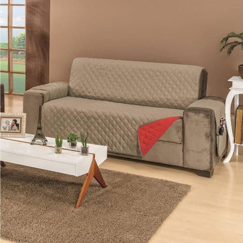 Protetor De Sofá Dupla Face Manu 3 Lugares - Vermelho/cáqui