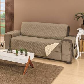Protetor De Sofá Dupla Face Manu 4 Lugares King - Cáqui/palha