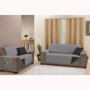 Protetor De Sofá King 2 E 3 Lugares Impermeável 100% Poliéster Cor:cinzapreto