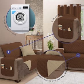 O protetor é habilmente confeccionado com matelado em linhas que formam desenhos de losangos, agregando um toque sofisticado ao seu sofá. Além disso, a praticidade é elevada com a presença de bolsos, também conhecidos como porta-objetos, localizados estrategicamente em um dos braços de cada capa. Esses bolsos permanecem acessíveis, independentemente do lado da capa que você escolher, proporcionando facilidade ao seu cotidiano.